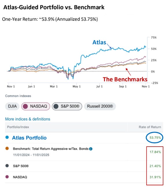 Our macro-signal portfolio returned 54% over the past 12 months. That performance didn’t come from stock-picking. It came from reading the underlying economy in real time before the numbers were published, revised, and re-revised.