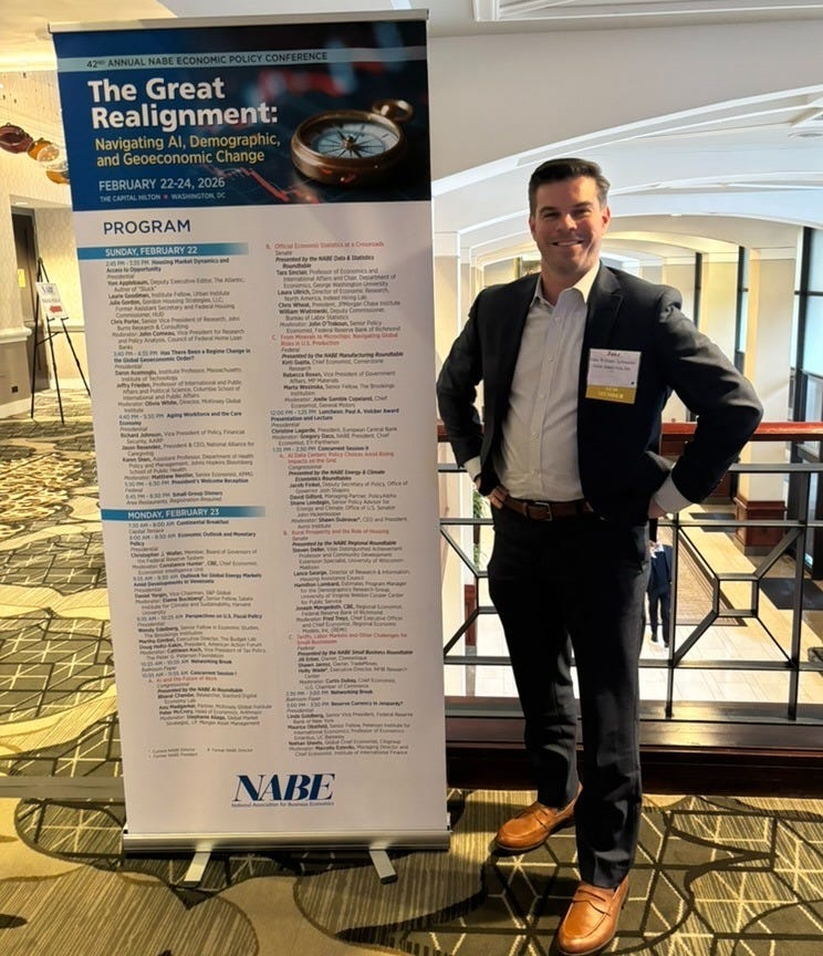 I had the pleasure of attending this year’s NABE Economic Policy Conference, “The Great Realignment: Navigating AI, Demographic, and Geoeconomic Change,” and left the meetings energized by both the intellectual honesty and forward-looking tone of the discussions.