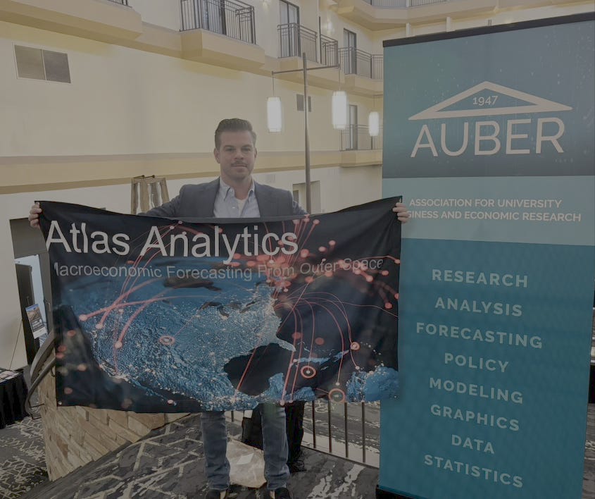 At AUBER, I spoke about how satellite imagery is transforming regional and national economic forecasting and offering new ways to measure GDP, trade, and industrial activity before the official data ever arrives. It was inspiring to see the energy of applied economists and data scientists from across the country who are advancing state and local economic analysis. A special thank you to the keynote speakers Abbie Wozniak, David Altig, Professor Ed Glaesar, and Mike Russo as well as to the AUBER leadership team for putting together such a warm and intellectually rich event.